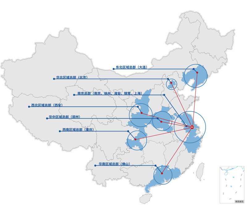國(guó)內(nèi):以蘇州為中心,成立南京區(qū)域第二總部,并積極擴(kuò)容國(guó)內(nèi)分公司,現(xiàn)已形成八大區(qū)域總部。